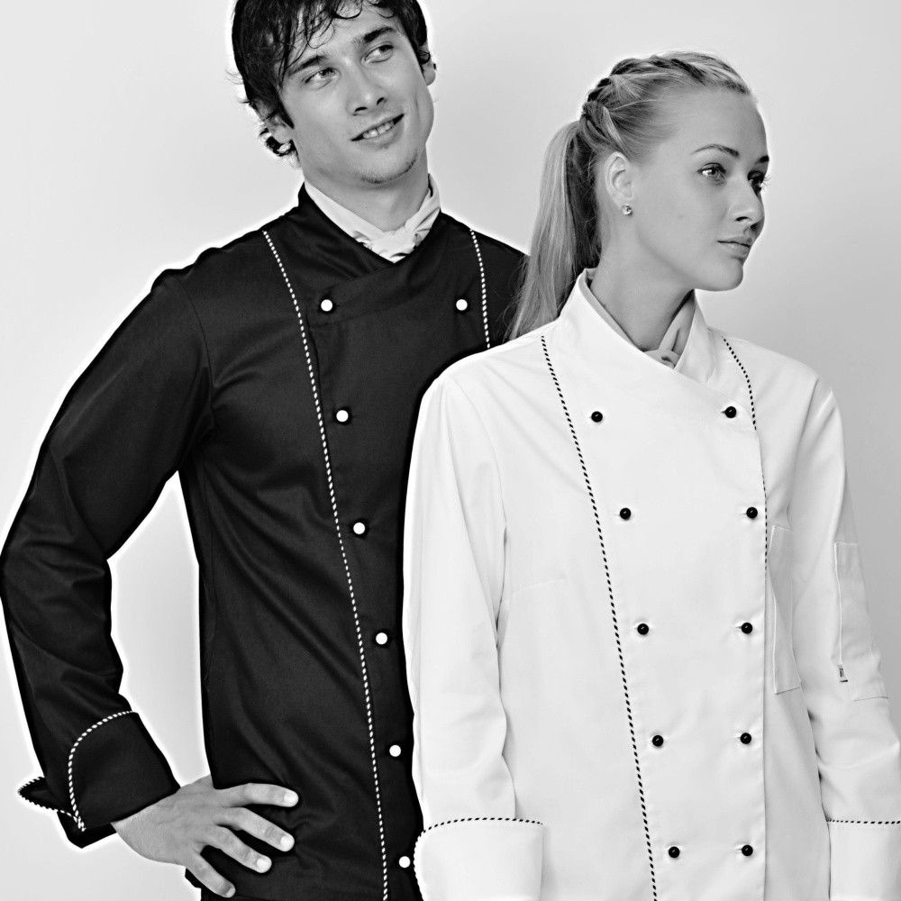 Nápadité a praktické pracovní oděvy pro kuchaře a personál v kuchyni. Důraz je kladen na každý detail pohodlného a praktického používání.